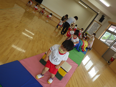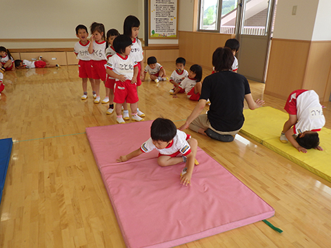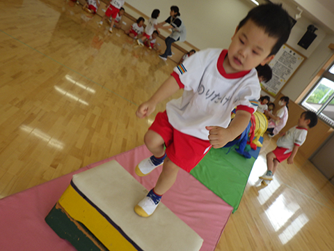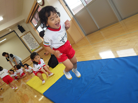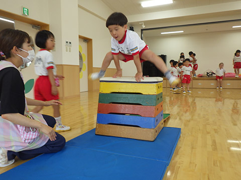 跳び箱は4段と5段に分かれ、とりあえずできそうな方を