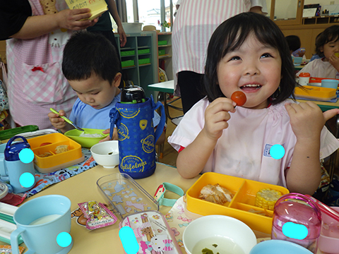 明日はお弁当&6月生まれの誕生会を各教室でおこないます