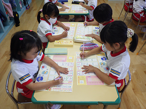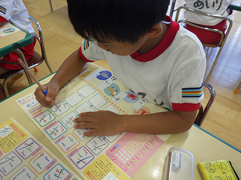 年長児になるとこうやってかっこいい姿勢で学習だってしてます