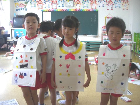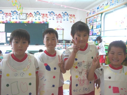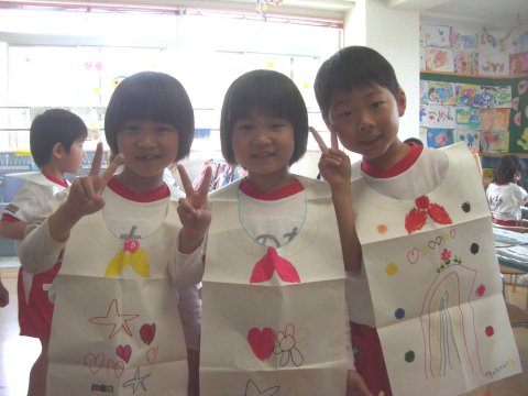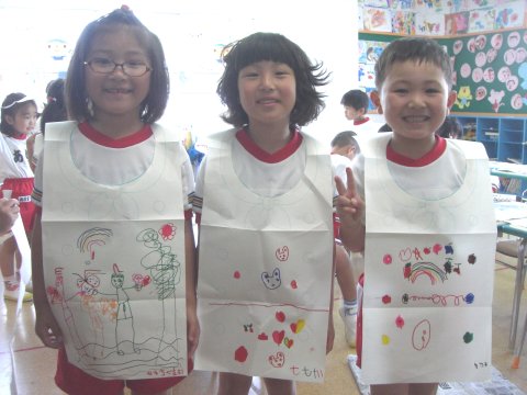 年長組のお友だちは、エプロンを作りました