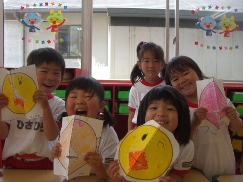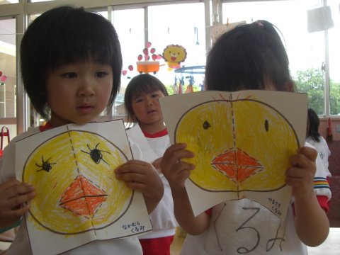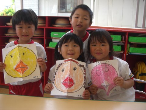 年中組のお友だちは、口がパクパク動くお面。