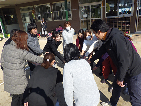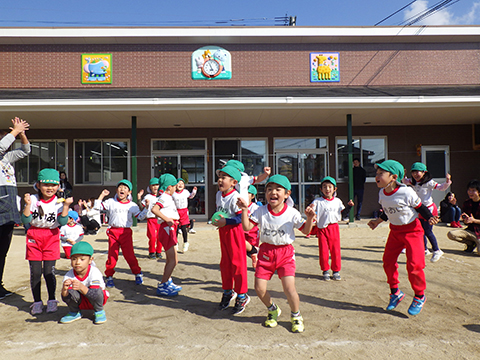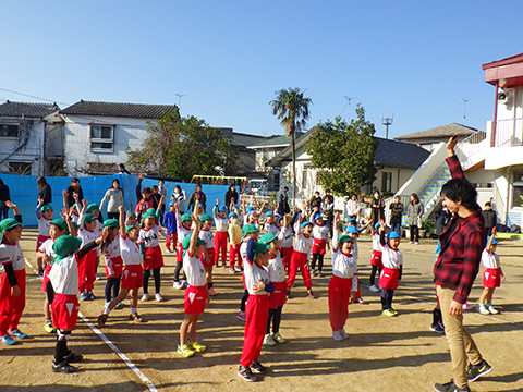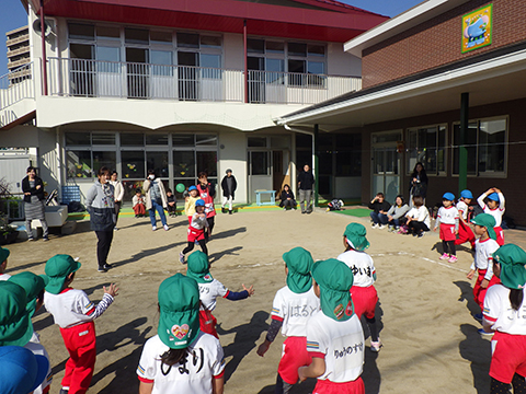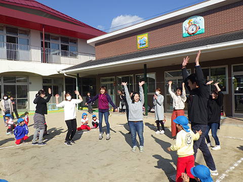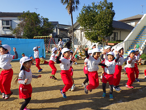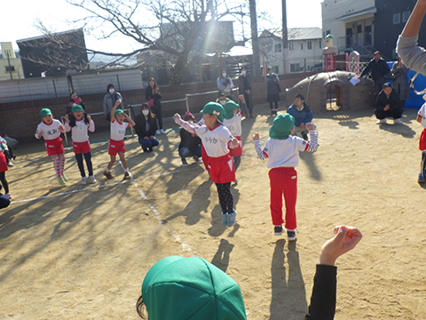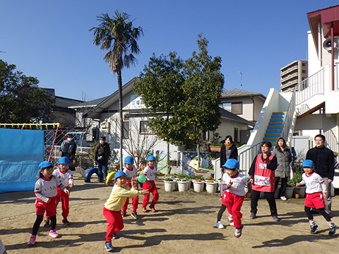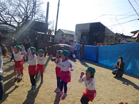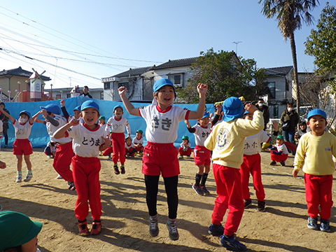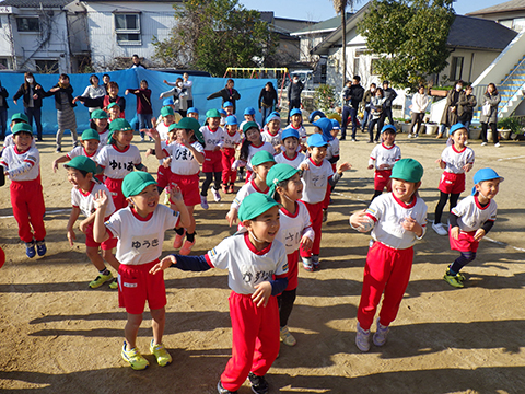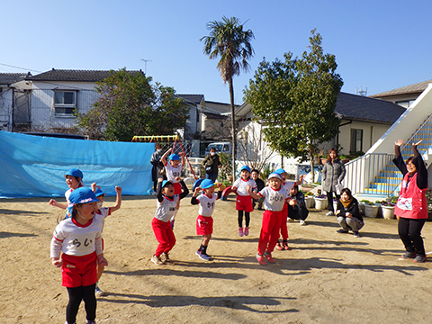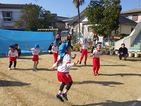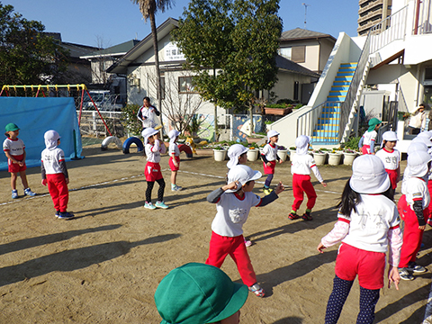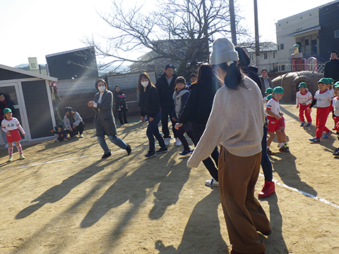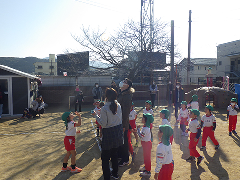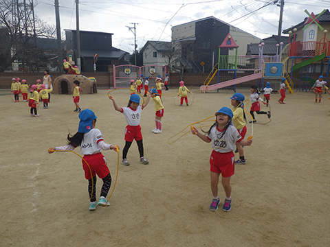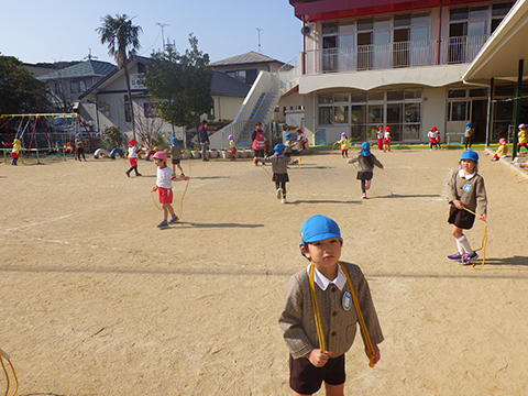 なわとびや“はないちもんめ”であそぶ園児たち