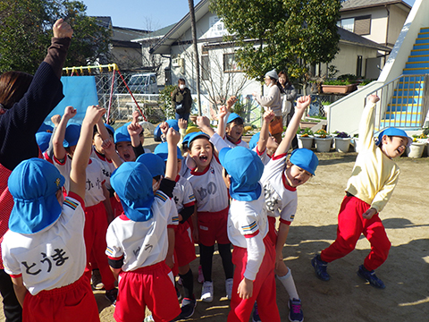みんなのおかげで鬼が改心したと聞いた園児たち、