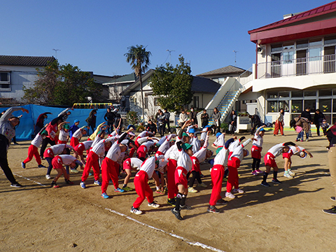 まずは元気に、ウォーミングアップの体操から