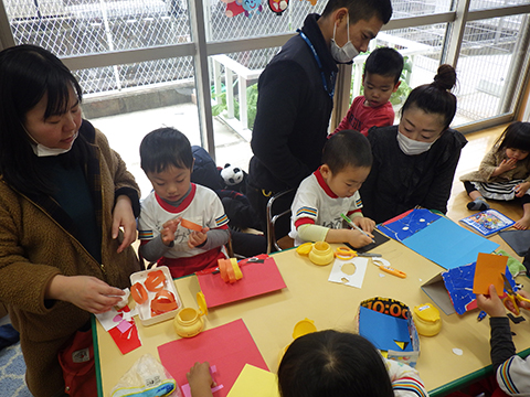 今週末の節分に向けて、鬼のお面作りをおこないました