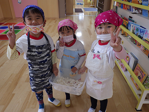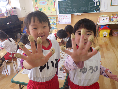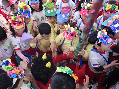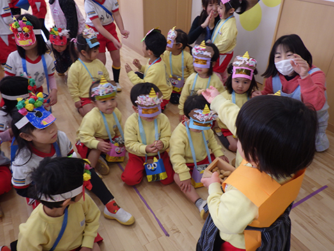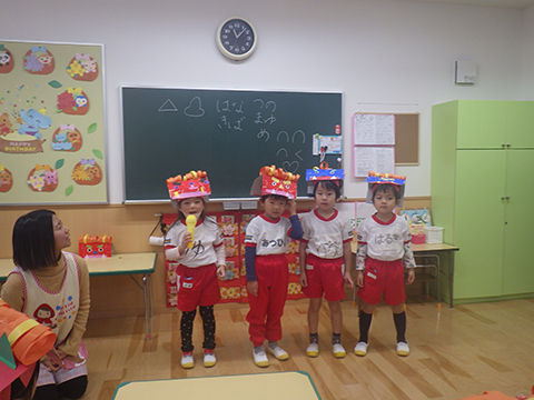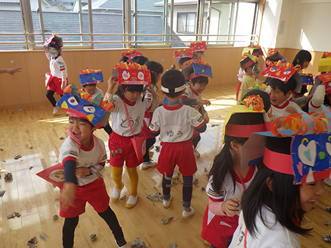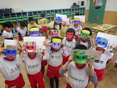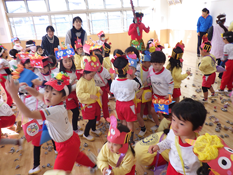 というわけで、ひと足先に幼稚園でも豆まきを行ないました