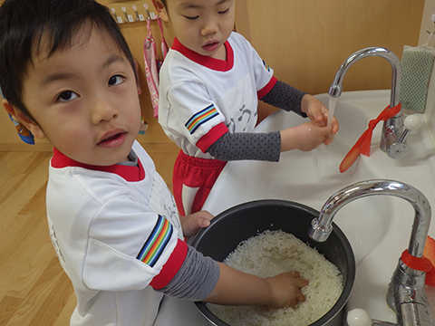 クッキングとはいえ、まずは米研ぎから