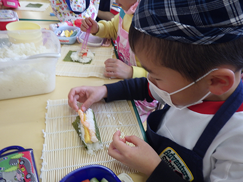 みそ汁が一段落したところで、今度は恵方巻き!