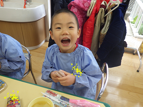 その後は教室で歳の数だけ豆を食べて、