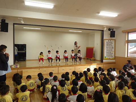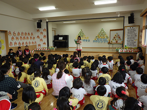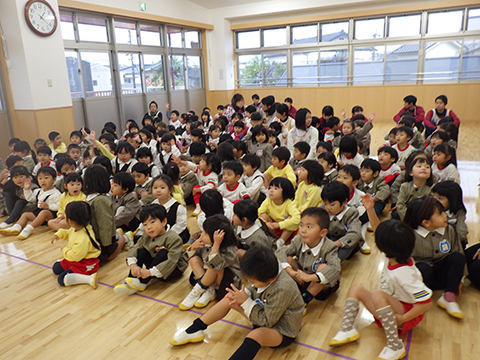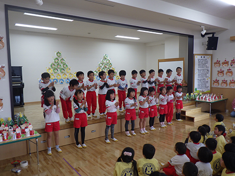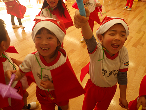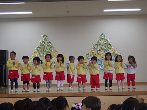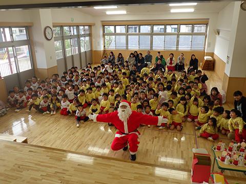 「♪あわてんぼうのサンタクロース」をみんなで合唱
