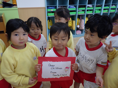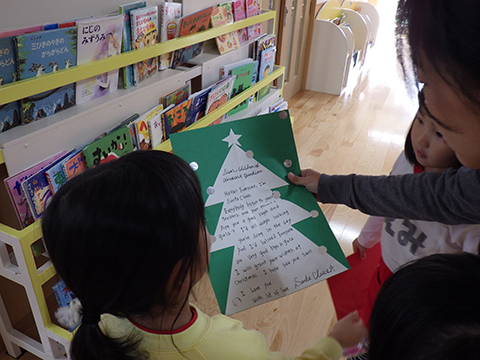「クリスマスかいにサンタさんがきてくれるかな〜」