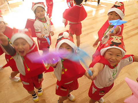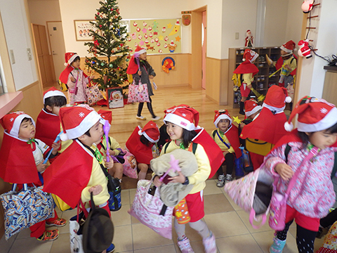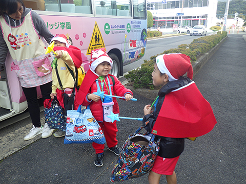 今日はみんなお気に入りのサンタさんの格好で帰っています