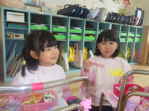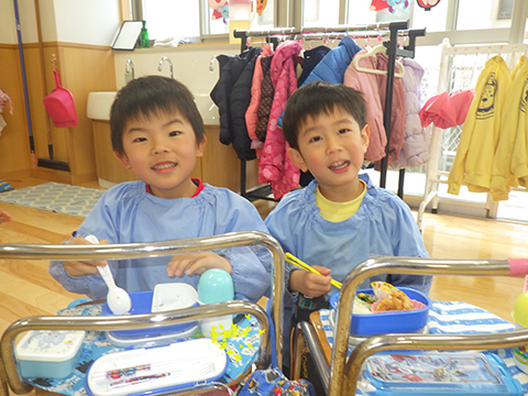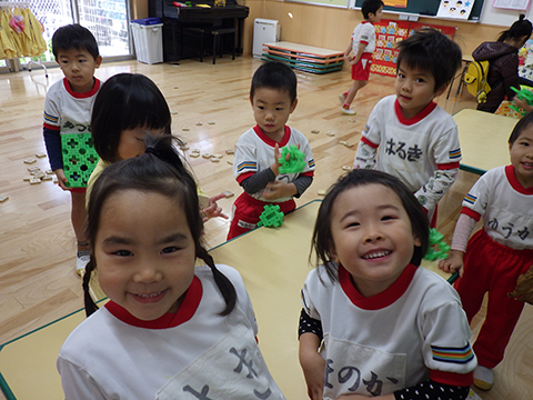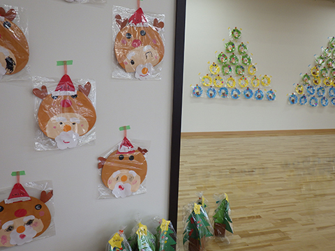 おゆうぎ室にはみんなが作った製作物を飾り、
