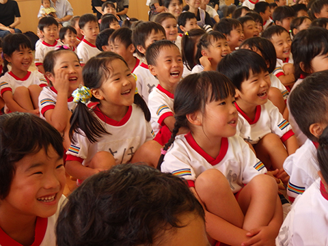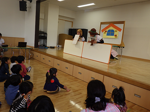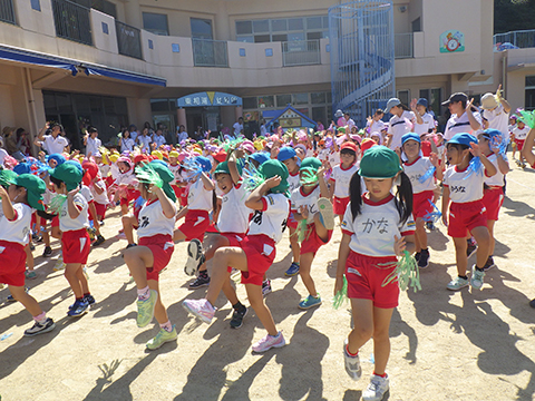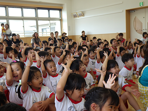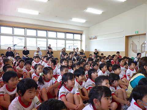 お話の中にマーチングや組体操も出てきて子どもたちも大喜び