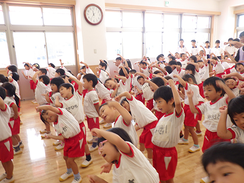 最後はおゆうぎ室に集合し、みんなで踊って