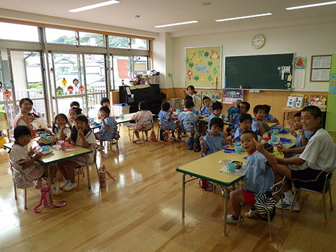 お姉さんお兄さん先生たちと一緒に食べました。