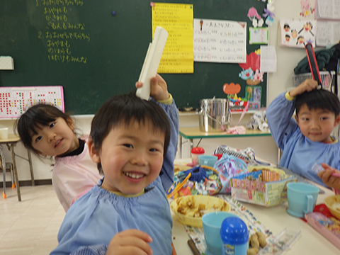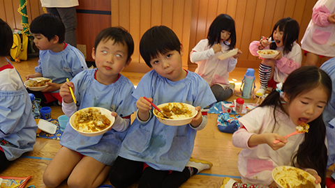 年長児、今日も東相浦幼稚園にて学区ランチ