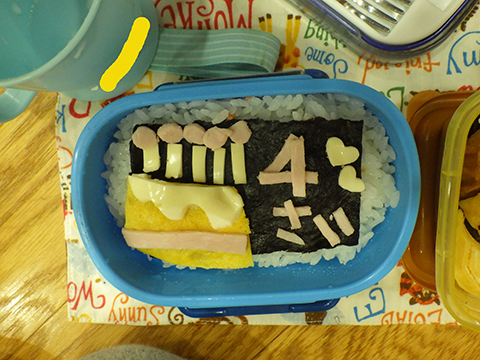 のりの上にご飯を敷いて、持ってきた具材を並べます。