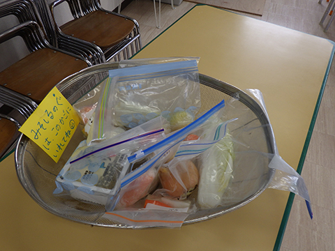 切り終えた材料はらいおんキッチンでおいしいみそ汁にしてもらうため