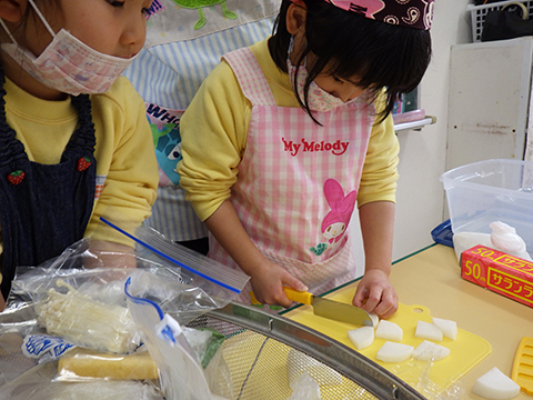 初めて包丁を使う子もいたりと様々ですが、