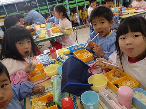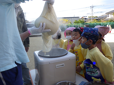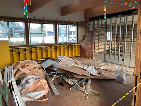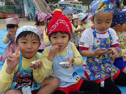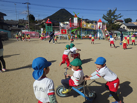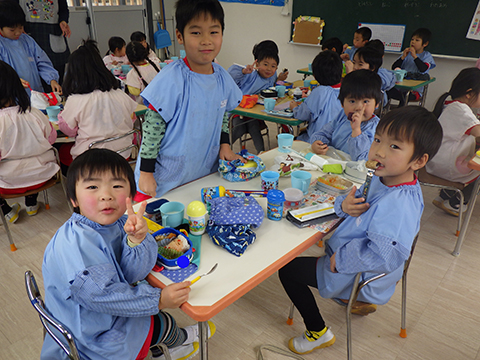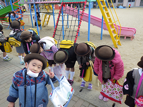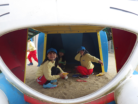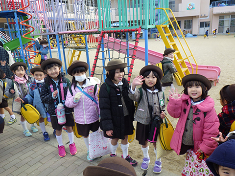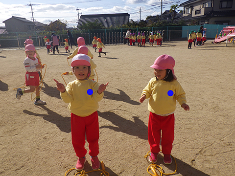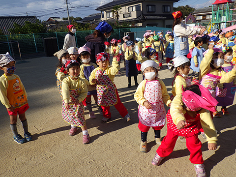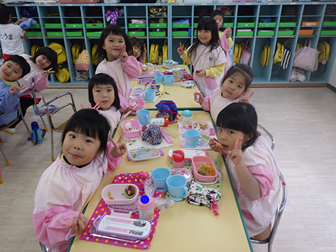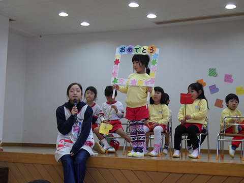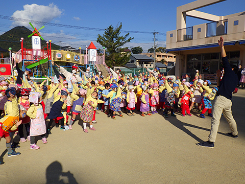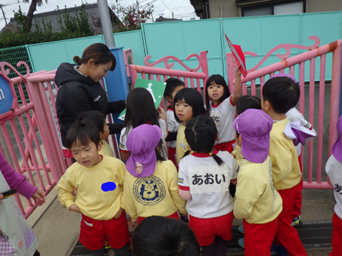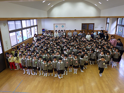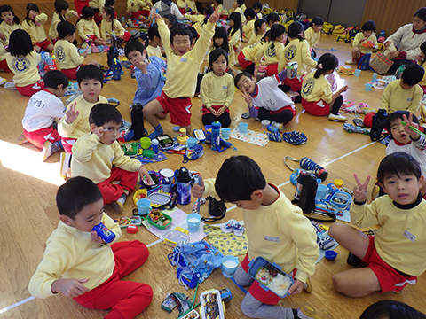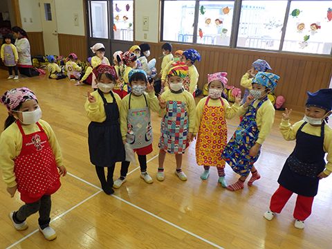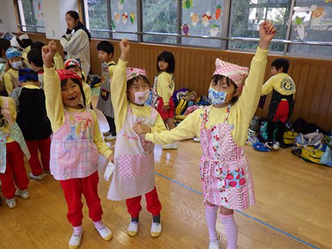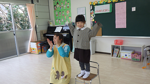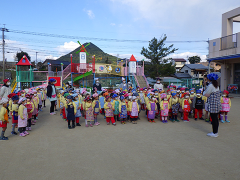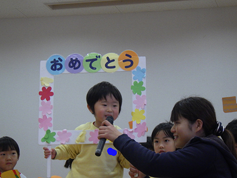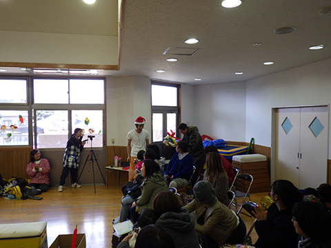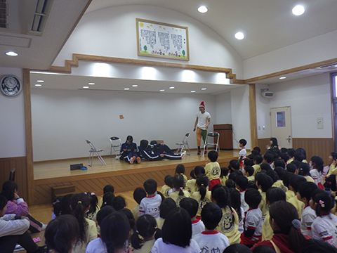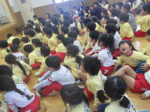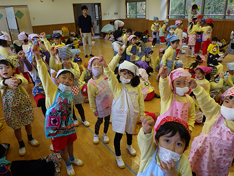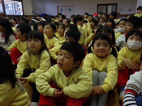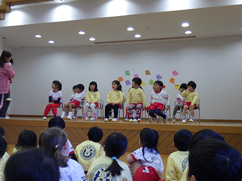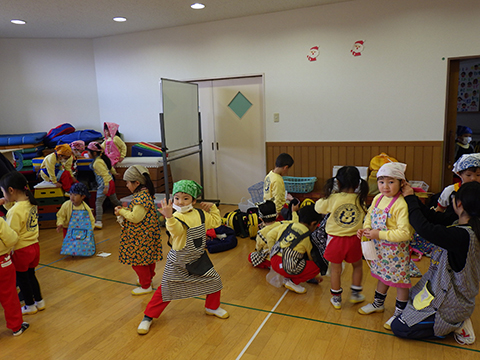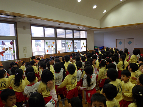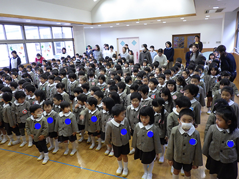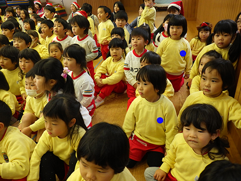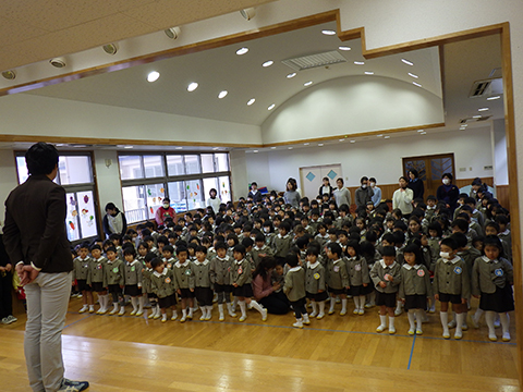 それでは、東相浦幼稚園のおゆうぎ室にて