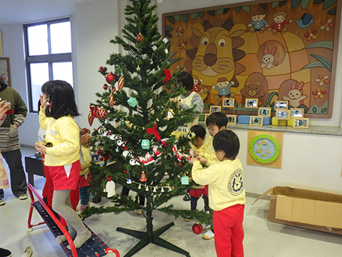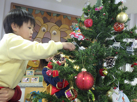 みんなが一所懸命作ったクリスマス製作もかわいく飾られ