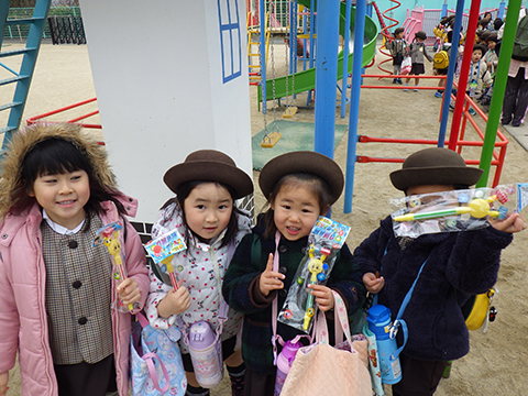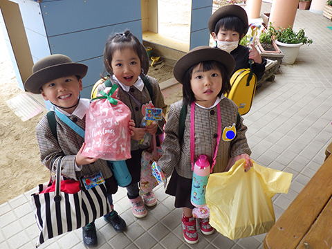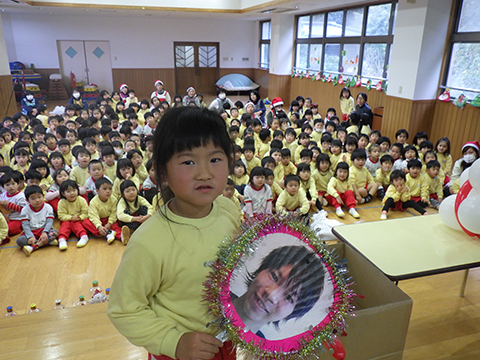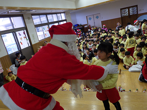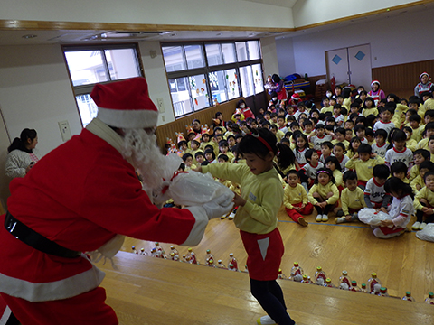 各クラス、代表の園児がサンタさんから直接プレゼントをもらいました!