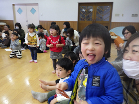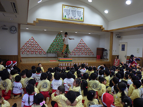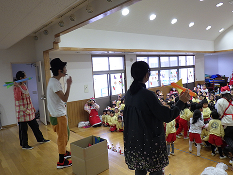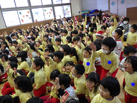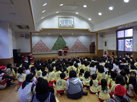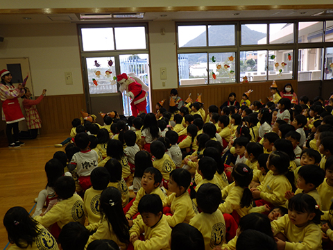 「♪あわてんぼうのサンタクロース」を元気に歌っていると・・・
