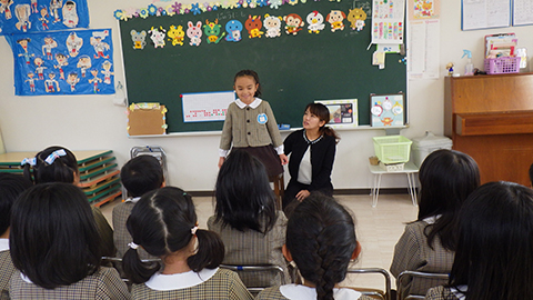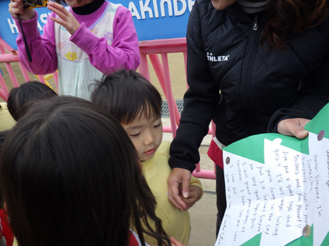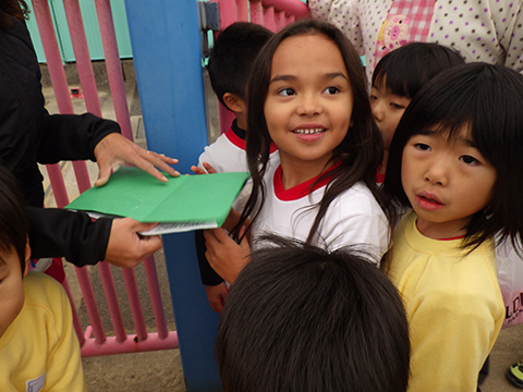 たまたまアメリカ人の園児が通りかかり、翻訳をお願いすることに!