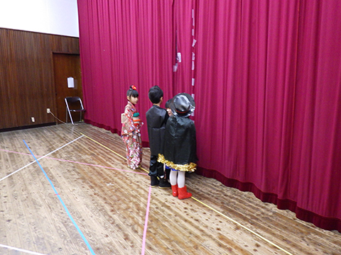 幕の裏では、『はじめのあいさつ』の園児たちもスタンバイ