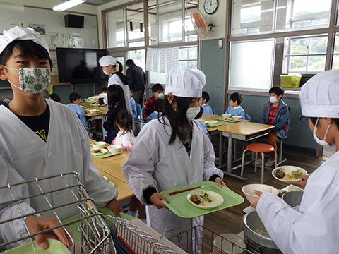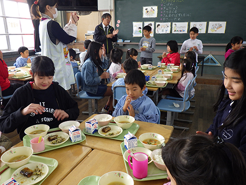 今日はばらぐみが小学校での体験給食!