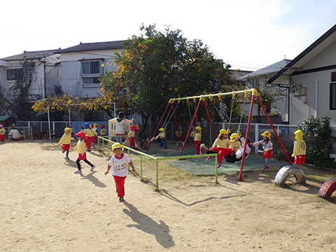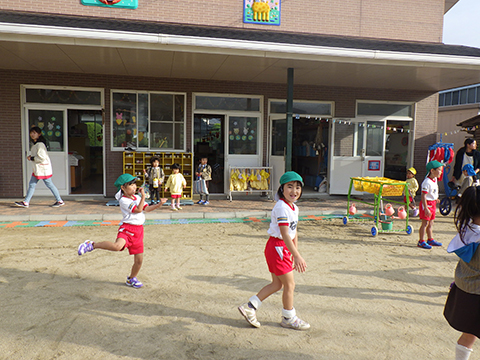 反対側には半袖で遊ぶ園児の姿もありました