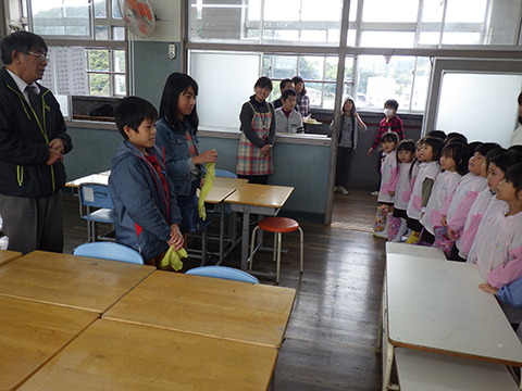 小学生の先輩たちが「もち食べに来ました!」と来園