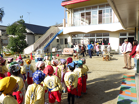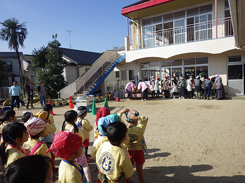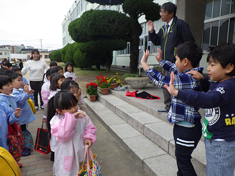 今日お手伝いに来てくださったお父さん、お母さんたちに朝の挨拶