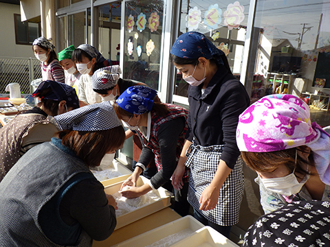 お母さんたちがせっせと丸めてくださり、お腹を空かせている