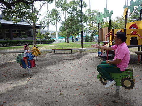 虫捕りに夢中になる子、スプリング遊具などなど