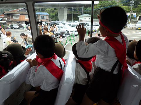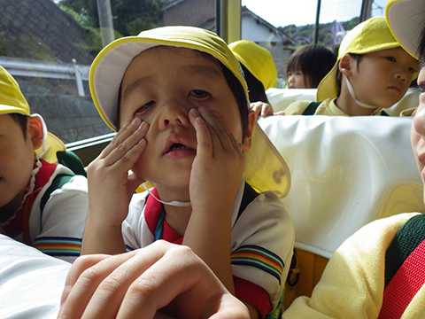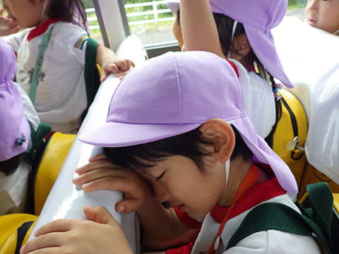 帰りのバスはお疲れモードの園児もいました