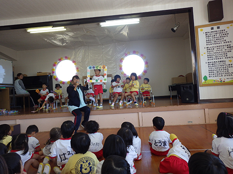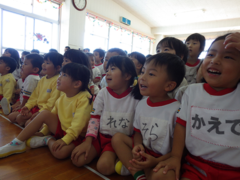 『はたらくくるま』が大好きな園児たちは食い入るように見つめます。