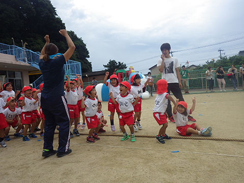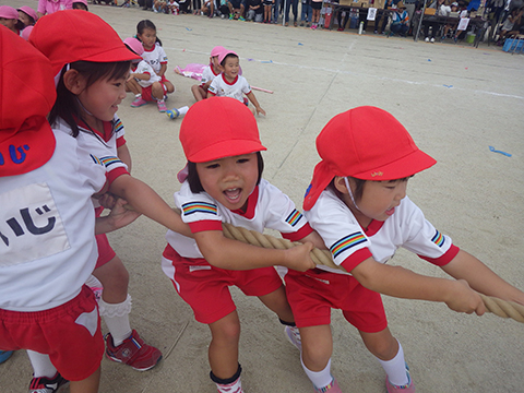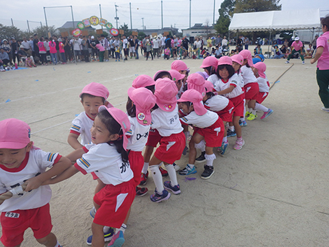 年中児のTNHK(つなひき)は、3クラスによるグループリーグ対決