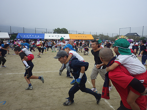 年長児の騎馬戦!ここからは親子での競技が続きます。