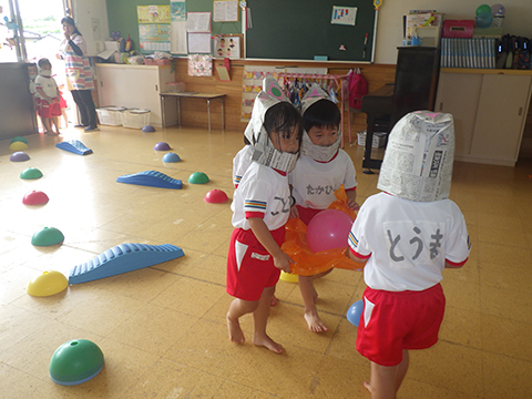 落とさないよう、慎重に風船を運びます