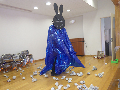 勇んで最終決戦の場、おゆうぎ室へ向かいます!