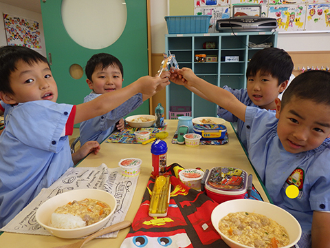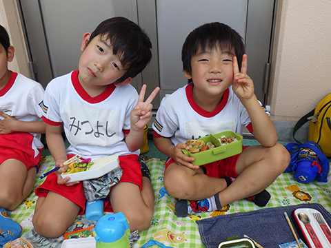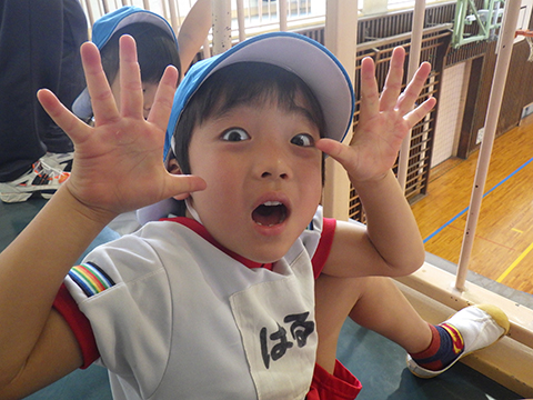 カメラを向けると変顔をするまでの余裕が出てきた年少児!