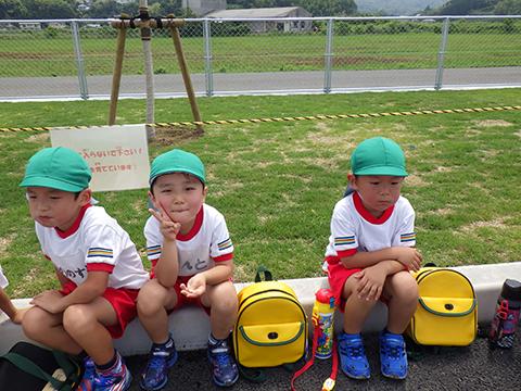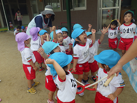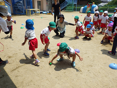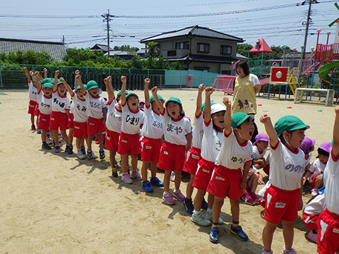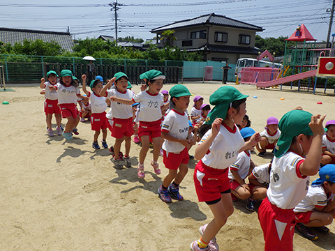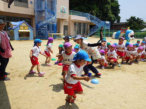 東相浦幼稚園年長児、ひかりぐみも一緒にリレー対決