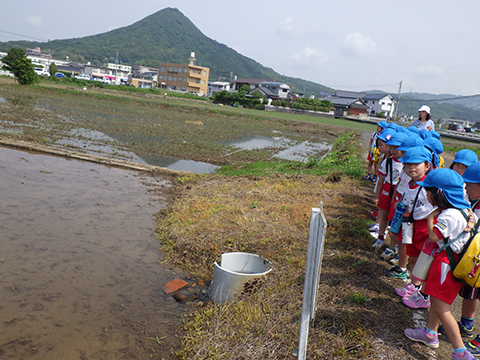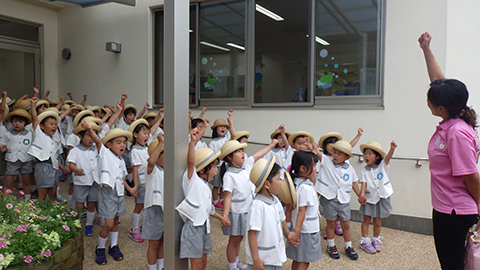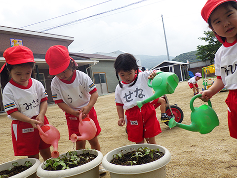 代わりに水やりをおこなう年中児