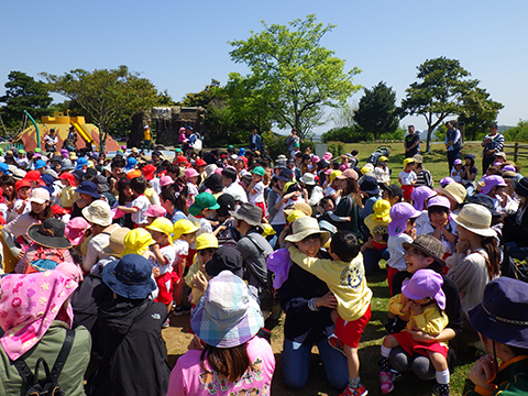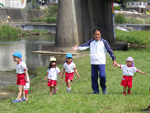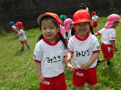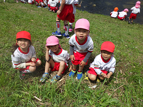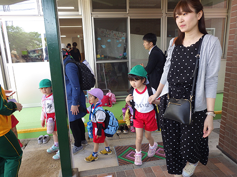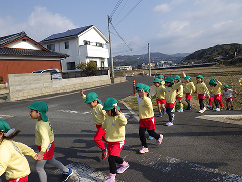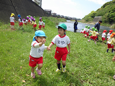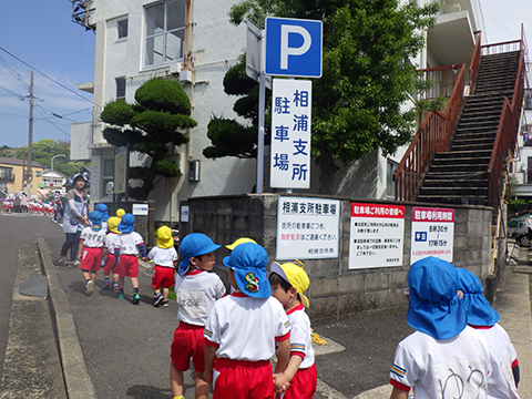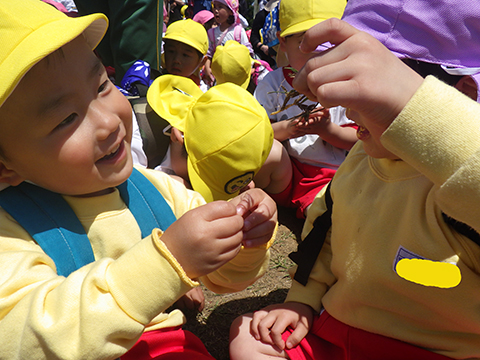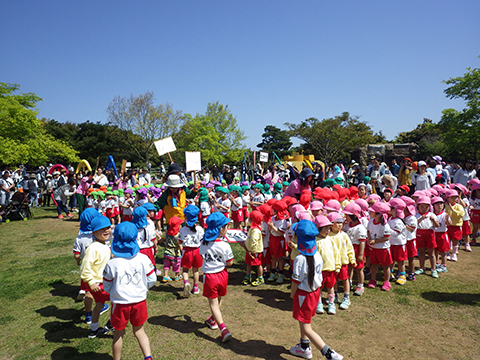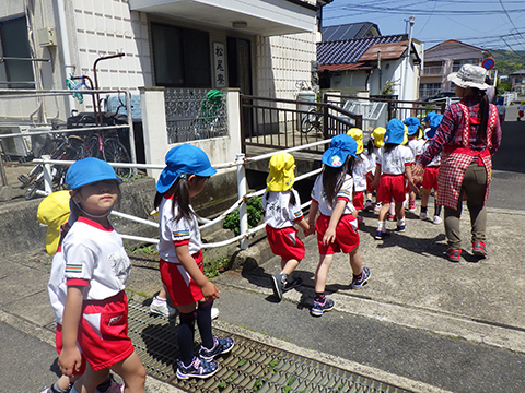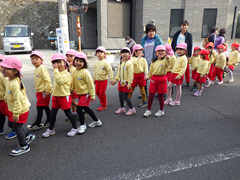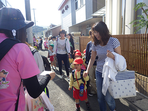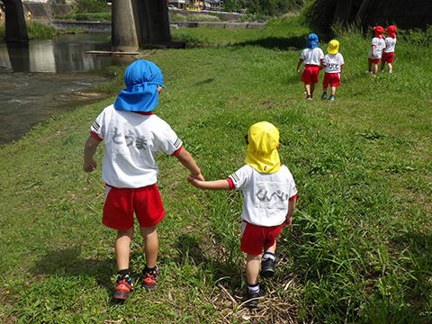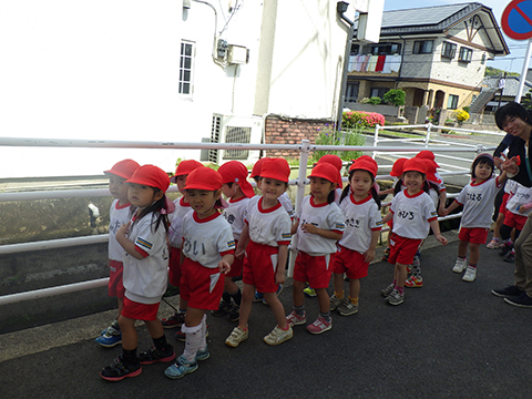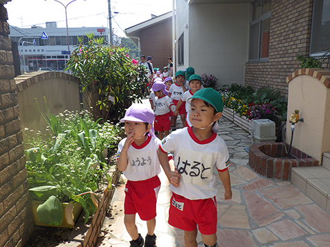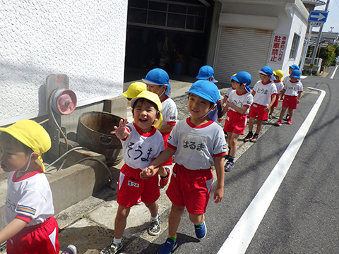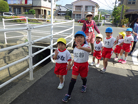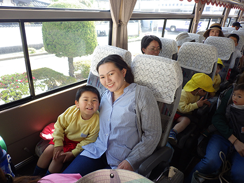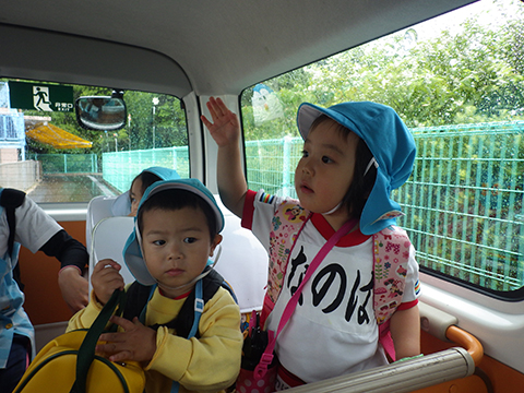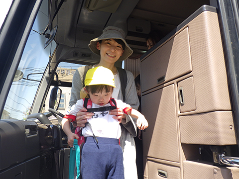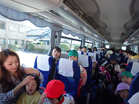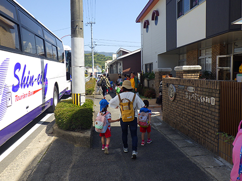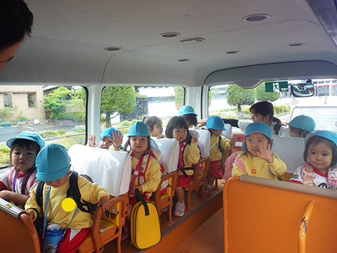 年長児は徒歩で、年中少児はバスで近くまで行きます
