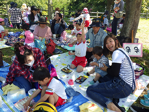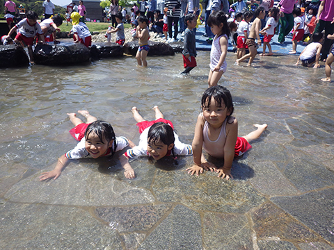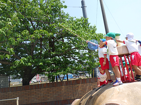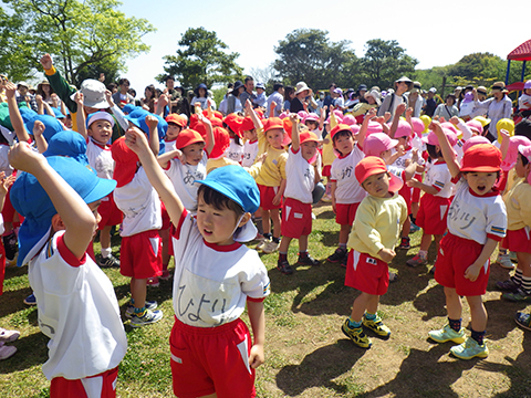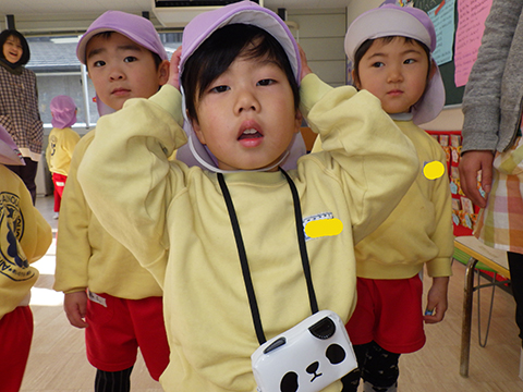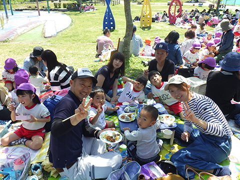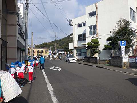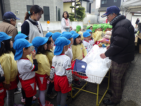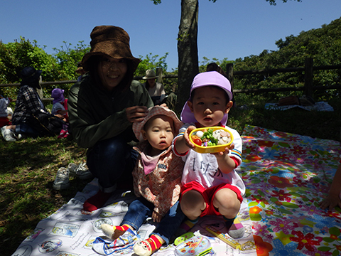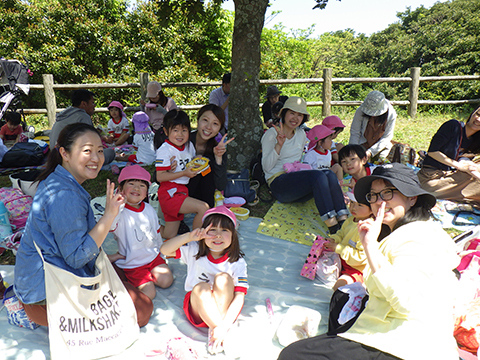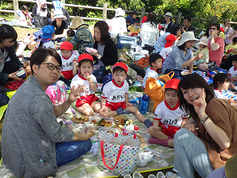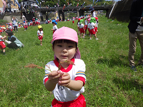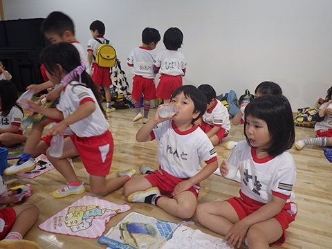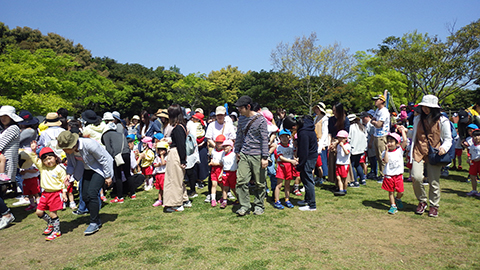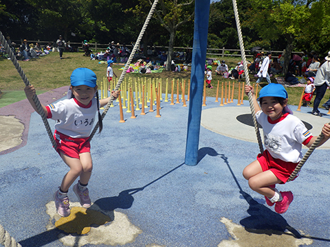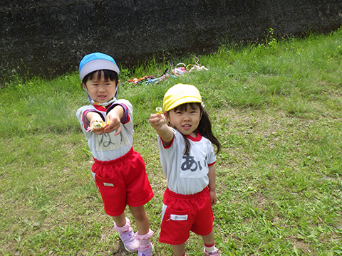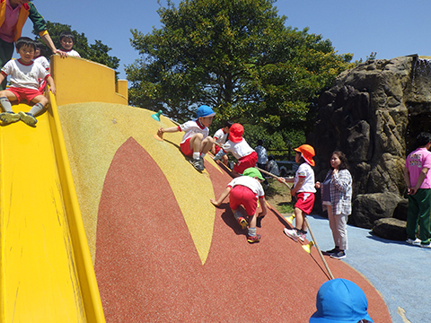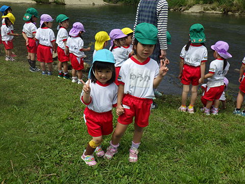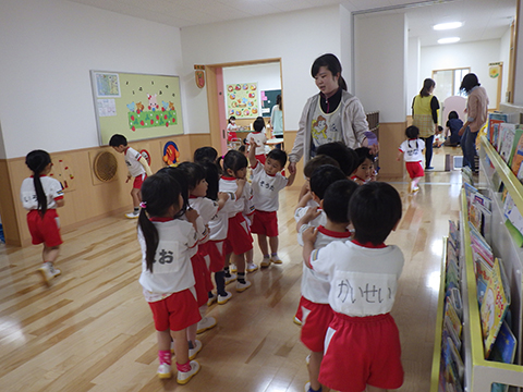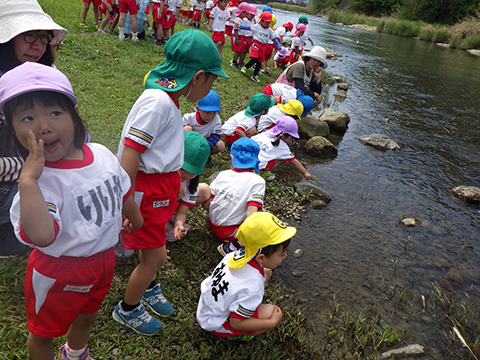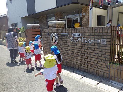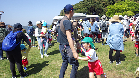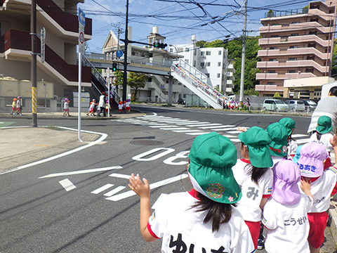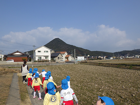年長児は徒歩で、年中少児はバスで近くまで行きます