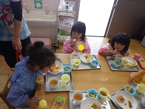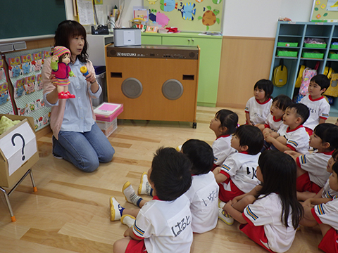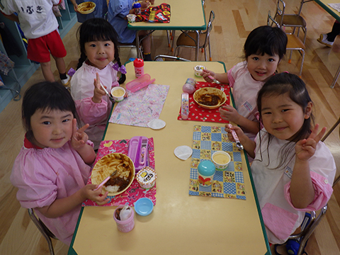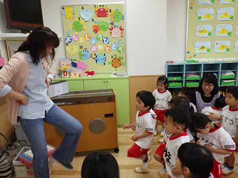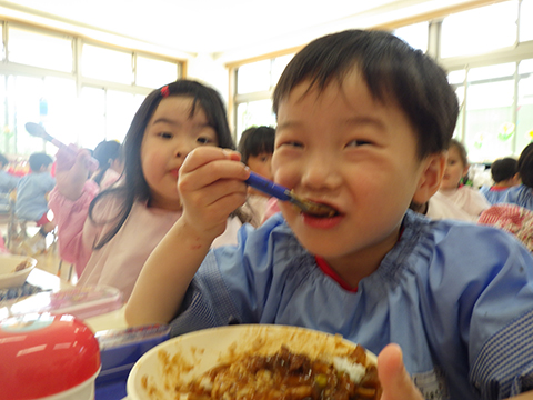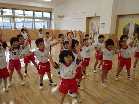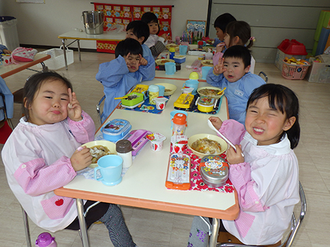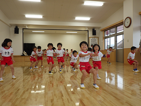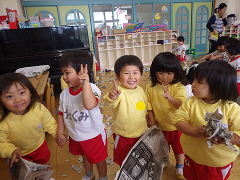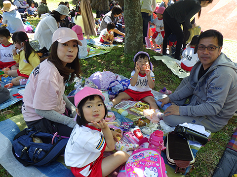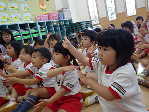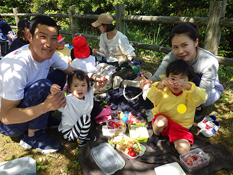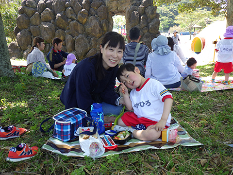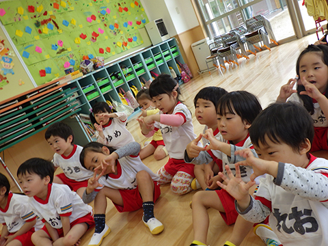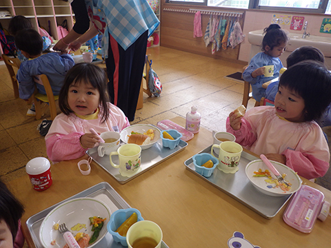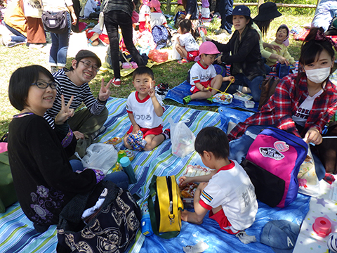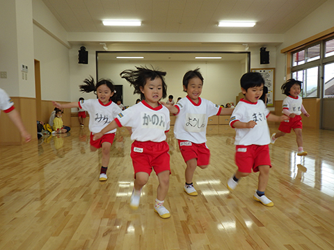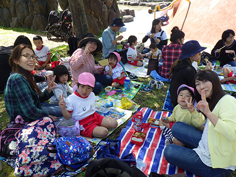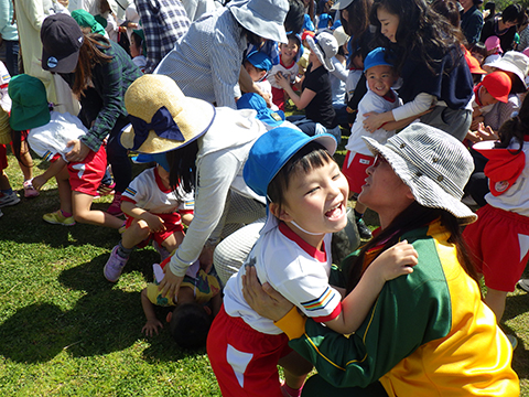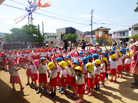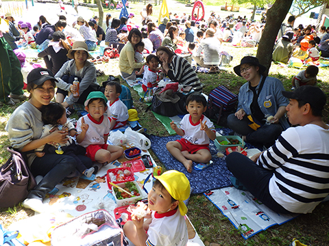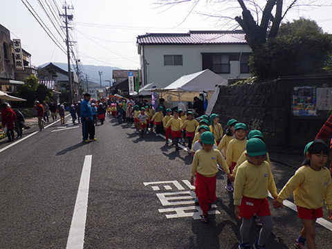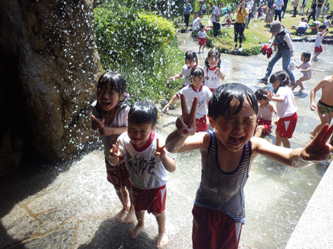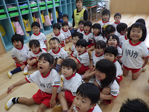 年長児は徒歩で、年中少児はバスで近くまで行きます