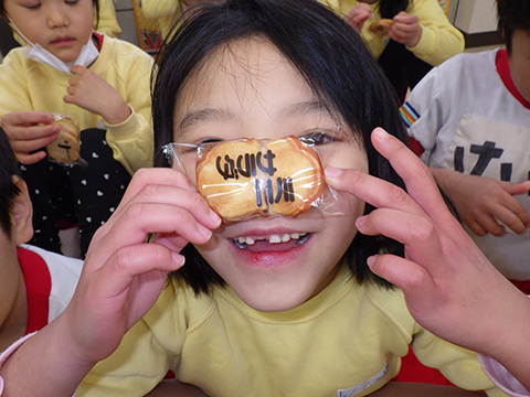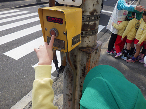 みんな押したいこのボタン、今日が誕生日の園児が代表で