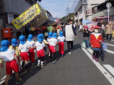 おゆうぎ会で訪れた公会堂を通り過ぎるとお祭り会場はすぐそこ!